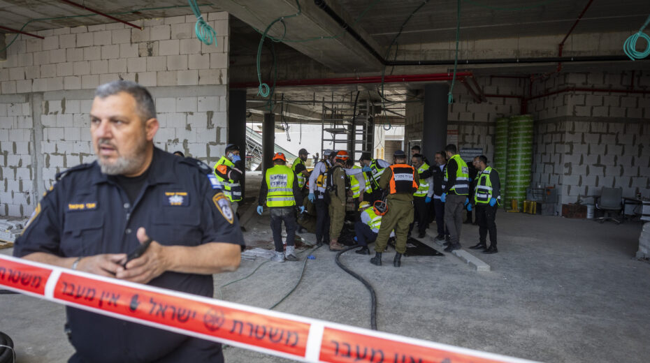Israeli rescue and emergency services at the site of an Iranian-fired ballistic missile impact in Bat Yam, March 9, 2026. Photo: Yehoshua Yosef/Flash90.