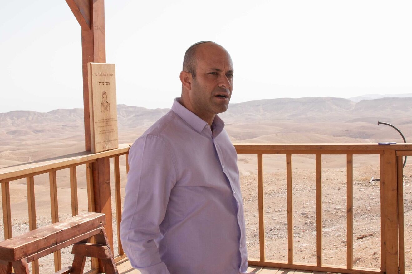 Eliram Azulay, head of the Hebron Hills Regional Council, at Mitzpe Midrag, Nov. 27, 2025. Photo by David Isaac.