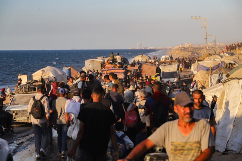 Gazans return to their homes in the northern Gaza Strip along Rashid Street near Gaza City on October 11, 2025, following the ceasefire agreement between Hamas and Israel. Photo: Khalil Kahlout/Flash90.