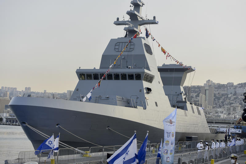 The ceremony celebrating the arrival of first of four new Sa’ar 6 ships in Haifa on December 02, 2020. Photo by Meir Vaknin/Flash90