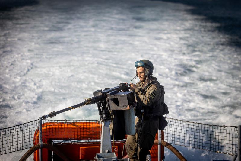 Israeli Navy Force soldiers operate on Navy vessels off the coast of of the southern Israeli city of Ashdod, August 6, 2024. Photo by Chaim Goldberg/Flash90