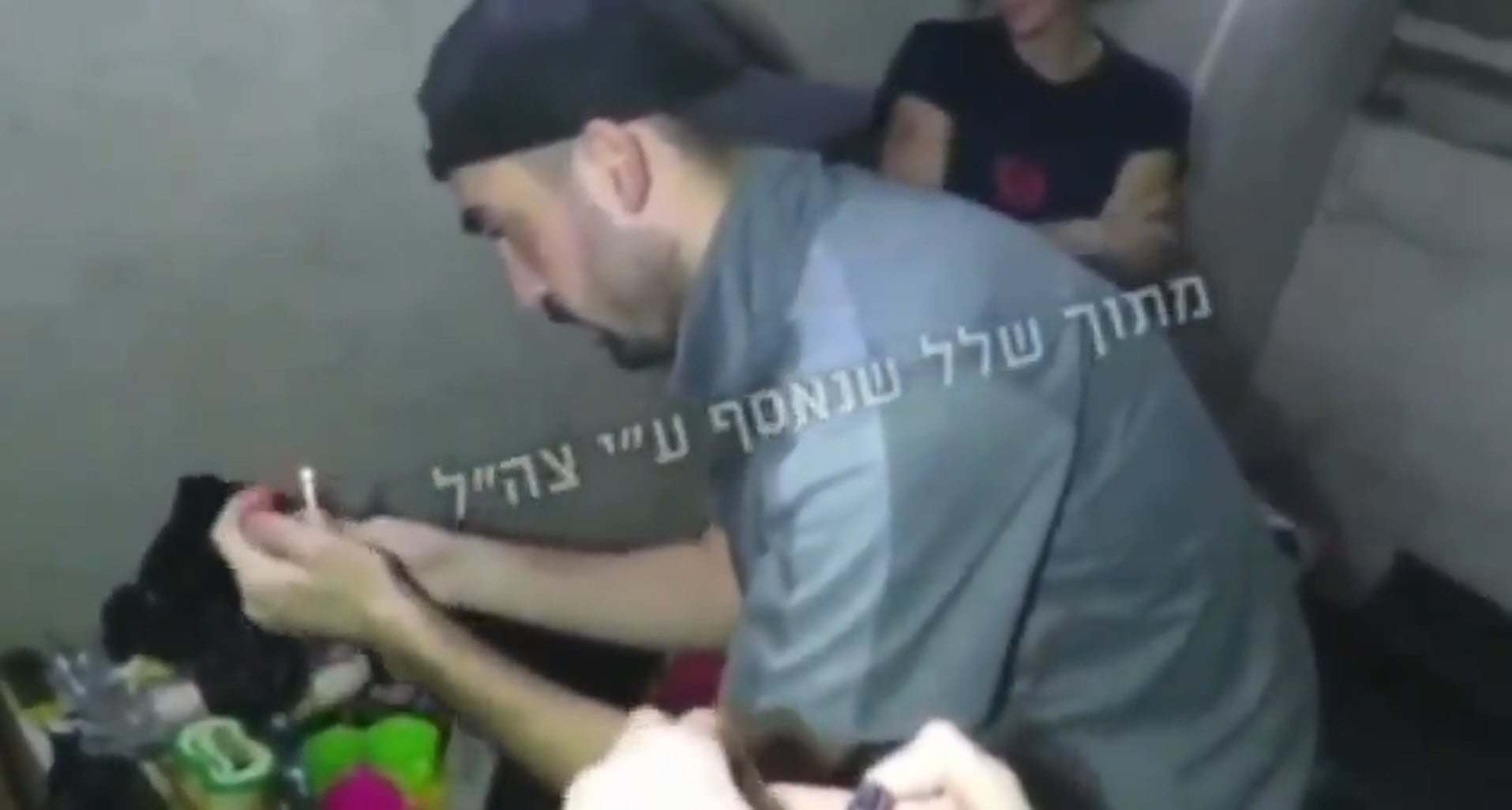 Six Israeli hostages celebrate the holiday of Chanukah in Hamas captivity, December 2023. Credit: IDF Document and Technical Collection Unit.