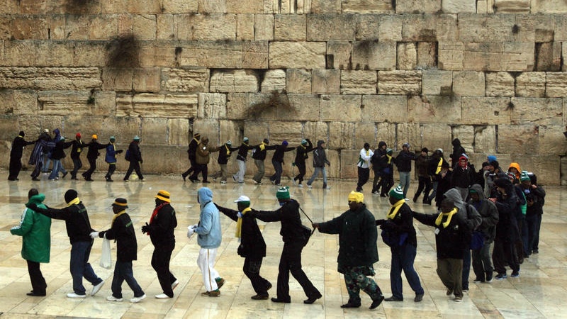 A group of Nigerian Christians dance at the Western Wall during a visit to Jerusalem in 2010. Photo by Abir Sultan/Flash90