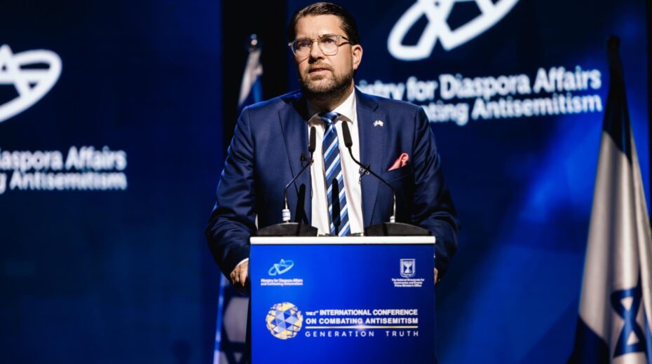 Jimmie Åkesson, the long-time leader of the Sweden Democrats and a leading figure in Swedish politics who is widely regarded as a strong contender to become the next Swedish prime minister, spoke today in Jerusalem at the Second International Conference on Combating Antisemitism. The conference was initiated by Israel’s Minister for Diaspora Affairs and Combating Antisemitism, Amichai Chikli.