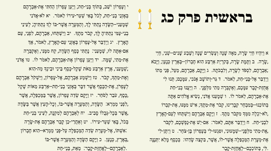 Weekly Torah Portion – חַיֵּ֣י שָׂרָ֔ה – Chayei Sarah – The Life of Sarah; Genesis 23:1 – 25:18; 1 Kings 1:1 – 31