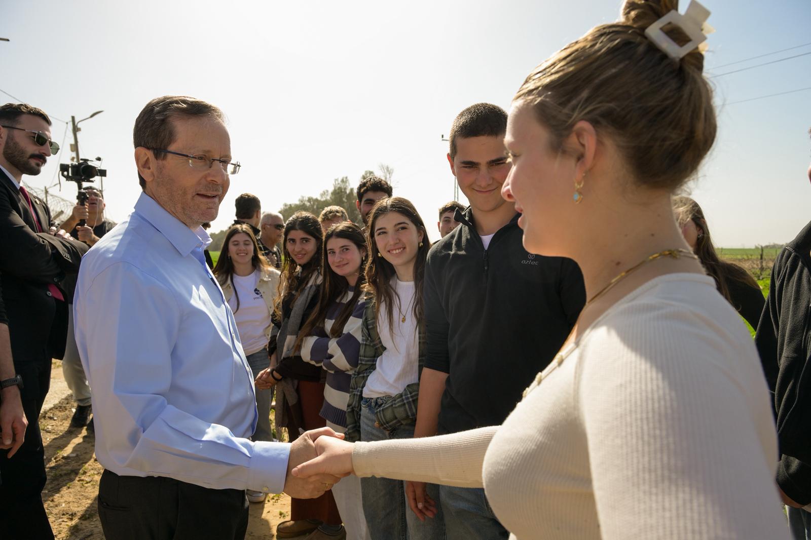 Herzog concluded his visit with a meeting with the youth of the “Nir Oz” pre-military academy—the first cohort of a young generation that has come from all over the country out of a sense of mission to rebuild. For them, Nir Oz is not only a story of the past, but a responsibility for the future.