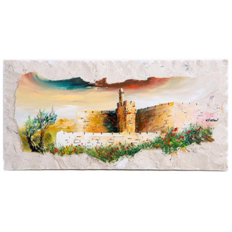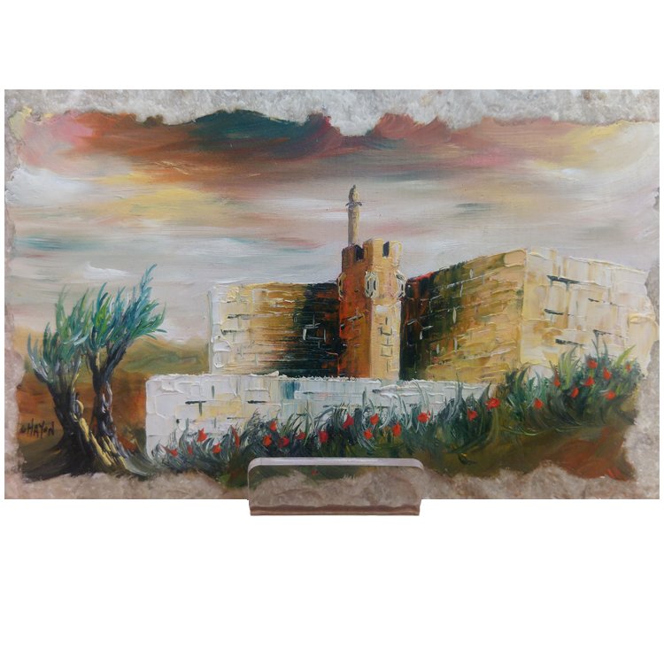 Decorate your wall or study desk with this stylish hand painted artwork on authentic Jerusalem stone!